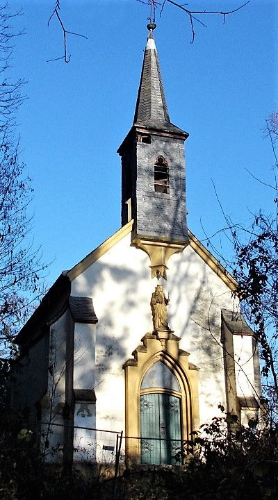 1868 durch eine Stiftung des Trierer Kaufmanns Joseph Schalkenbach nach Plänen des Luxemburger Architekten Karl Arendt durch den Trierer Baumeister A. Bayer errichtet, Steinhauermeister war Werding. Renovierung 1982-1984, erneute Innenrenovierung 2003.