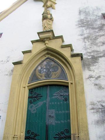 Zweiachsiger Putzbau mit Dreiachtelchor, gestuften Strebepfeilern und Giebeldachreiter. Stufenportal mit überstabter Rahmung aus hellem Sandstein, bekrönt von einer Statue der Muttergottes mit Kind und Zepter. Innenraum rippengewölbt, Wandgemälde der Maria von Heinrich Diekmann von 1949. [1]