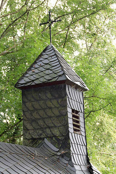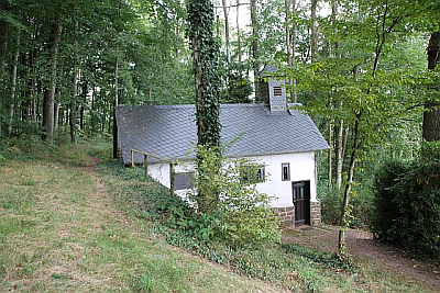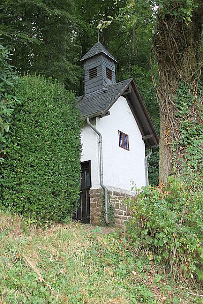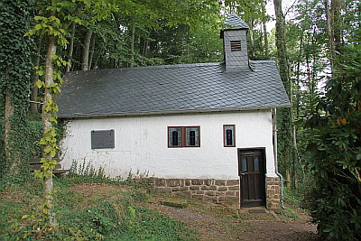 1923 ließ Jakob Leisen - er lebte seit 1906 in den Wäldern bei Wiersdorf - auf einem steil zum Waldrand ansteigenden Wiesenhang westlich der Prüm die schlichte, rechteckige Kapelle mit Dachreiter bauen. An sie stößt unter gleichem Dach die Klause an. Der kleine Kapellenraum enthält ein barockes Altarrentabel aus Sandstein vom Anfang des 18. Jahrhunderts, das vorher als Seitenaltar der alten Biersdorfer Pfarrkirche diente. Es enthält heute Figuren einer Immaculata und desMichael.