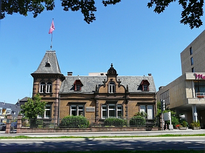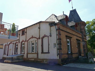 Weinkellerei, bezeichnet 1896; eingeschossiges Verwaltungsgebäude mit Eckturm, bichromer Klinkerbau, Neurenaissance, Grundstück komplett unterkellert (Kreuzgratgewölbe). [1]