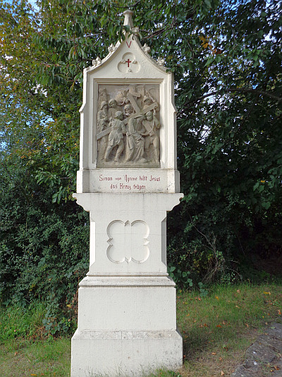 Kreuzweg; 13 freistehende Stationen, als 14. Station kleine Kapelle, neugotisch, Ende 19. oder Anfang 20. Jahrhundert. [1]