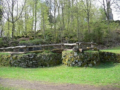 Unterhalb des Kriegerdenkmals gibt es aus Basaltsteinen errichtete Terrassen und einen Bierkeller. Im 19. Jahrhundert waren auch noch Lauben errichtet. Das Gelände wurde von den Dauner Vereinen als Festplatz genutzt. [1]