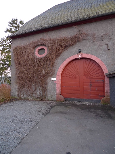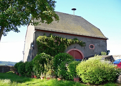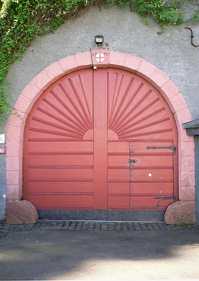 Große Scheuer. 1740. Zehntscheune. Im Schlussstein des Tores das Trierer Kreuz. [2]