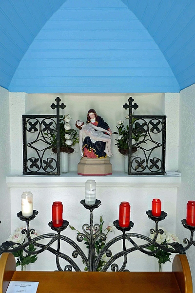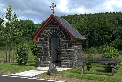 Südwestlich der Ortslage an der Straße nach Steinborn: Wegekapelle; Basaltquaderbau, Ende des 19. Jahrhunderts. [1]