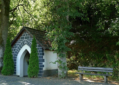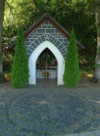 Die Straße Oberstadtfeld-Niederstadtfeld schneidet das Marktal, sogenannt, weil es die Gemarkung der beiden Dörfer trennt. Hier befindet sich am Wegrand, an die Berghalde sich anlehnend und von zwei Linden beschattet, ein Kapellchen. Viele eilen hastigen Schrittes vorüber, ziehen nach frommer Väter Brauch den Hut oder bekreuzen sich. Manche bleiben auch wohl einen Augenblick stehen, senden der Gottesmutter Blick und Gruß. Wenigen ist die Geschichte des Heiligenhäuschens bekannt.