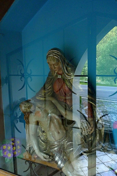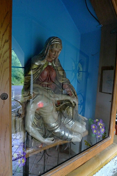 Die Statue wurde von dem damaligen Pfarrverwalter Gummich und dem derzeitigen Gemeindevorsteher Sprünker in Trier erworben und zunächst in der Kirche in Oberstadtfeld aufgestellt. Von hier aus bewegte sich am 21. August 1892 eine feierliche Prozession zum Marktal. Sechs Jungfrauen aus Oberstadtfeld trugen die Statue. Am Heiligenhäuschen hielt der Herr Pfarrverwalter eine Ansprache, dann fand die feierliche Benediktion von Statue und Kapellchen statt und zum Schluß wurde die Andacht von der schmerzhaften Mutter Gottes aus dem Gesangbuch gebetet.