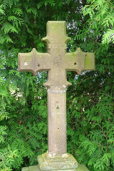 Aus dem kapitellartigen Absatz wächst das verzierte Kreuz heraus. Nach der Umsetzung des Kreuzes anläßlich der Flurbereinigung (der vorherige Standort war ca. 30 m weiter rechts an der Straße) befindet sich das Kreuz in relativ gutem Zustand. Der Oberteil des Kreuzes war offensichtlich einmal abgebrochen und ist - allerdings nicht sehr fachmännisch - wieder aufgesetzt worden. [2]