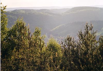 Mit Ausblick bis zum Mosenberg bei Manderscheid, die Dauner Berge und zum Hochwald. [1]