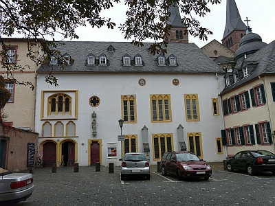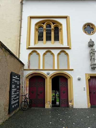 […] 1345 als "ad s. Kilianum" überlieferte Durchgangshalle in der Mittelachse des Kreuzgangflügels und darüber im Obergeschoß die in das dritte Viertel des 13. Jahrhunderts zurückreichende, durch Wilmowsky in den 1840er Jahren wiederhergestellte Kilianskapelle, ein kreuzrippengewölbter Saal. Erstmals im frühen 14. Jahrhundert schriftlich erwähnt, wurde die Kapelle später profaniert und erst im 19. Jahrhundert als solche wiederentdeckt. [1]