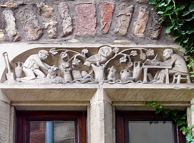 Antoniushaus, um 1959 unter Wiederverwendung von Architekturfragmenten rekonstruierte romanische Domkurie über mehrräumigem Keller mit wohl romanischer Kapelle, tonnengewölbter Keller, bezeichnet 1854. [1]
