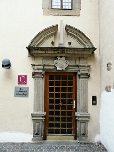 Antoniushaus, um 1959 unter Wiederverwendung von Architekturfragmenten rekonstruierte romanische Domkurie über mehrräumigem Keller mit wohl romanischer Kapelle, tonnengewölbter Keller, bezeichnet 1854. [1]
