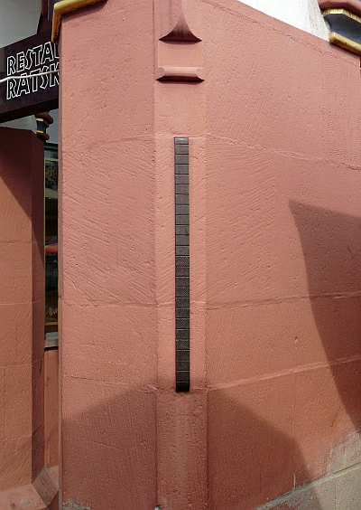 Museumsdirektor a. D. Dr. Dieter Ahrens hatte dankenswerterweise eine moderne Kopie der Trierer Elle (56,5 cm = 2 keltische Fuß) an der Ecke der 1970 wiederaufgebauten Steipe anbringen lassen. [1]