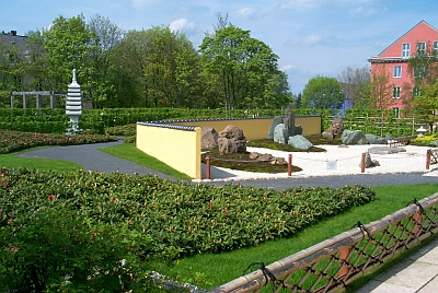 Dieser Garten wurde von dem japanischen Star-Architekten Suzuki Shigeichi und seinem Team aus Japanern, Deutschen und Belgiern konzipiert und verwirklicht.