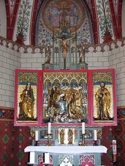 Vorbild für eine große Anzahl spätgotischer Einstützenkirchen an der Mosel und in der Eifel. Reiche Ausstattung. [1]