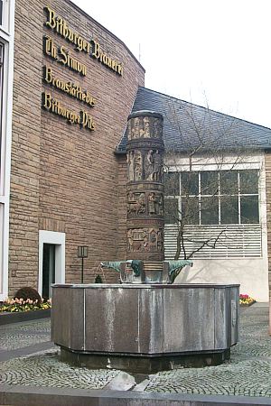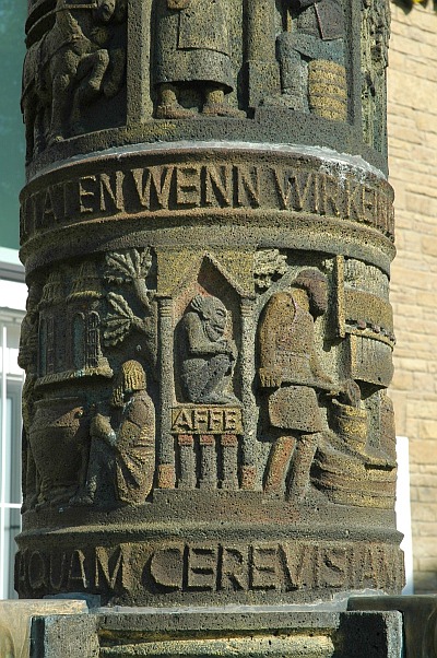 Vor der Brauerei und neben dem Brauereiausschank "Simonbräu" steht der Bierbrunnen, der 1937 von dem Mayener Bildhauer Prof. Burger geschaffen wurde. Der Brunnen stand ursprünglich auf dem Marktplatz, wurde aber nach dem 2. Weltkrieg am Sudhaus der Brauerei aufgestellt.
