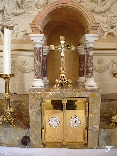 1914 von Julius Wirtz errichtet. Altaraufsatz aus dem 17. Jahrhundert.