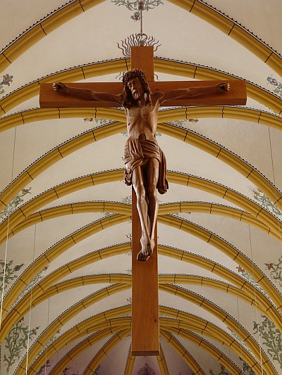 Über dem Zelebrationsaltar hängt ein Kreuz, dessen Corpus aus gotischer Zeit stammt. [1]
