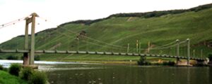 Die erste Betonbrücke von 1915 konnte einem Hochwasser von 1920 nicht standhalten und stürzte infolge ungenügender Fundamentierung ein. Es folgte im Jahre 1926 eine Eisenkonstruktion (Bogenbrücke), die jedoch 1945 beim Rückzug deutscher Soldaten einer Sprengung zum Opfer viel. Die einzige Hängebrücke an der Mosel konnte jedoch schon 1949 dem Verkehr übergeben werden. Jedoch musste auch sie Anfang der 90er Jahre (Wiedereröffnung 23.09.1994) komplett saniert werden und erstrahlt heute wieder in neuem Glanz und ist zurecht der individuelle Blickfang von Wehlen. [1]