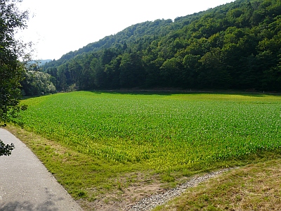 Flur 19 - Das Kylltal weitet sich ins Ramsteiner Becken hinein. Vom Westen her fließt der Kyll der Butzerbach = von Butzweiler her kommend, zu. Vor der Mündung des Baches heißen die Felder "Auf der Butzerbach" beziehungsweise "Unter der Butzerbach". Das zwischen Ramsteiner Weg, dem Bachlauf und der Eisenbahn liegende Felderdreieck heißt "Im Dreihut", was die Kordeler spaßig ausschmücken zu "am dreischepijen Hut". [1]