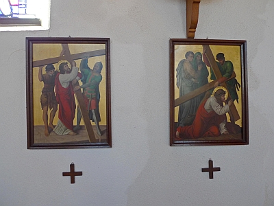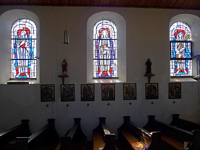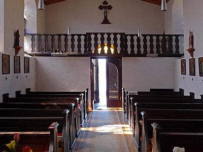 [...] Hiernach gab es im Mittelalter in der Ortsgemeinde Hinterweiler drei kleinere Kirchen, wovon nur noch die Kapelle aus dem Jahr 1860 vorhanden ist. Man zählte die stolze Zahl von 356 Seelen innerhalb der Gemeinde. Auch die Angaben der sogenannten Feuerstellen (sicherlich: Haushalte !) lag zur damaligen Zeit auch schon höher, als in der heutigen Zeit. [2]