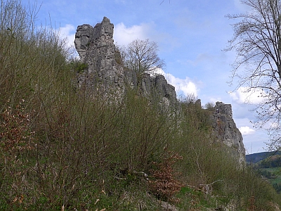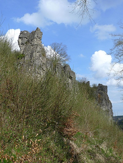Das Urzeitliche Korallenriff der Hustley bei Gerolstein prägt zusammen mit den mächtigen Dolomitfelsen Auberg, Munterley, und Heiligenstein eine der attraktivsten Tallandschaften am Oberlauf des Kyllflusses. Die mächtigen Felsformationen rund um Gerolstein sind die steinernen Zeugen eines devonischen Flachmeeres.