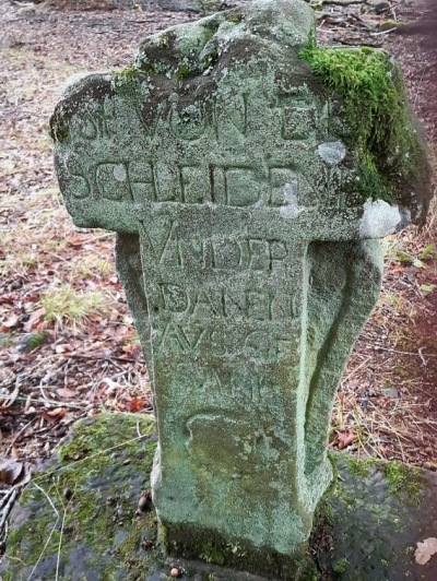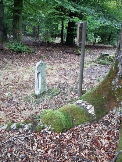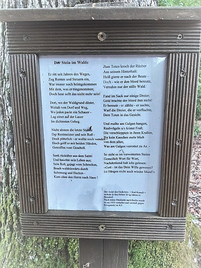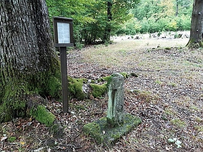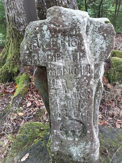 Herr Mauel (Fördervereins Alte Wehrkirche Sankt Peter e.V) hat das Kreuz auf einen Sockel gestellt und an dieser Stelle plaziert. Das Kreuz lag wohl einige Meter neben der Eiche. Um das Kreuz zu schützen hat er diesen Platz ausgesucht, da die Eiche auch geschützt ist. Neben der Eiche steht noch ein anderer Baum mit einem Gedicht, handgeschrieben und in Folie eingeschweißt.