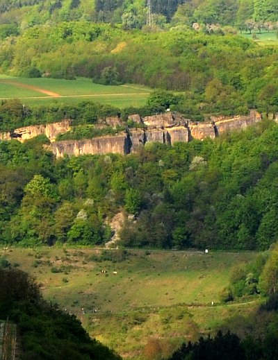 Auf dem Aussichtspunkt Liescher Berg fallen dem Betrachter die am gegenüberliegenden Moselufer aus dem Trias stammenden roten Buntsandsteinfelsen sofort ins Auge, die gleich daneben, deutlich von ihnen abgetrennt, von hohen grau-weißen Kalksteinfelsen des Unteren Muschelkalks überragt werden. Unterschiedliche Gesteinsschichten lagern normalerweise so übereinander, dass die jüngeren über den älteren Schichten liegen. Da die Muschelkalk-Gesteine jünger sind als die des Buntsandsteins, müssten die Kalksteinfelsen über den Buntsandsteinfelsen liegen. Der Grund, dass sie dies in der Igeler Verwerfung nicht tun, ist eine fast senkrechte Verschiebung der Schichten zueinander. Die geologische Bruchstelle der Igeler Verwerfung setzt sich über die Mosel fort und teilt auch den Liescher Berg. Sie ist hier jedoch nur noch an der unterschiedlichen Vegetation erkennbar, die sich hier schlagartig verändert.