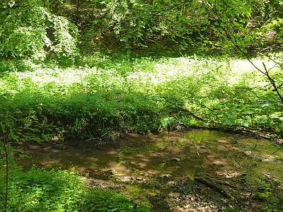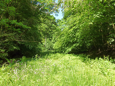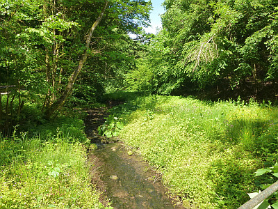 Hier staute ein Wehr den Kimmerbach für den Betrieb der Reitzenmühle. [1]
