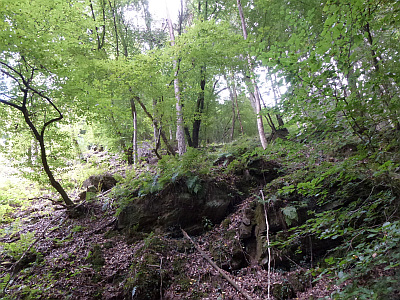Rund um Flur 36 bleibt in die ansteigenden Berghänge hinein noch ein begrenzter Rest der Gemarkung übrig. Von der Höhe des Fronholzberges herab läuft die Gemarkungsgrenze auf die Ecke des Mühlenwehres zu. Im auslaufenden Fronholzberg steht hoch das Wahrzeichen von Kordel, die "Kauley" = an Kaulen und Schrunden reich. Im Zusammenhang ist das ganze Felsenmassiv mit seinem mittelschichtigem, zum "Oberen Buntsandstein" hin tendierenden Sand und seinen Höhlenbildungen geologisch von Interesse. Das Bruderhäuschen bot einem Eremiten durch Jahrhunderte eine Behausung an, und die "Häl" = Hölle war mit den anderen Kauleyhöhlen im letzten Krieg für die Dorfbevölkerung als Bunker rettender Zufluchtsort.