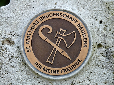 Pilgerkreuz der Sankt-Matthias-Bruderschaft aus Mönchengladbach-Neuwerk. Sie ist eine Gebetsbruderschaft, die zwei Mal im Jahr eine Wallfahrt nach Trier zum Grab des Apostel Matthias unternimmt. [1]