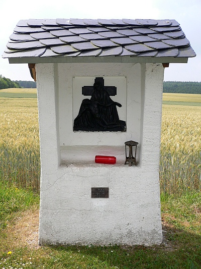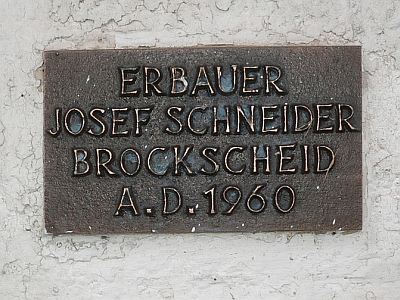 Es steht am Ende der Glockenstraße, Einmündung in die Landesstraße Daun - Eckfeld, rechte Seite vom Ort her kommend. 1960 errichtet von Klaus Schneider aus Brockscheid.