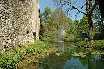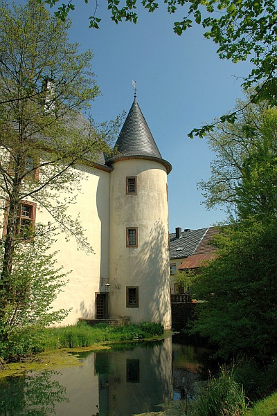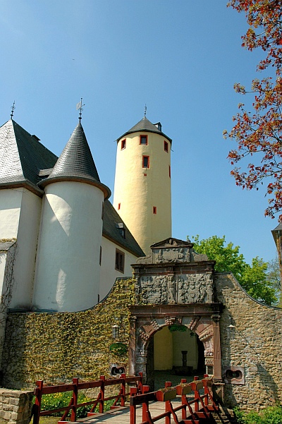 > Die im gleichnamigen Eifelort nur 3 Kilometer nördlich von Bitburg gelegene, 1263 als Besitz der AbteiSankt Maximin genannte Wasserburg repräsentiert sich als architektonisch besonders reizvolles Bauwerk.