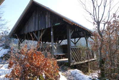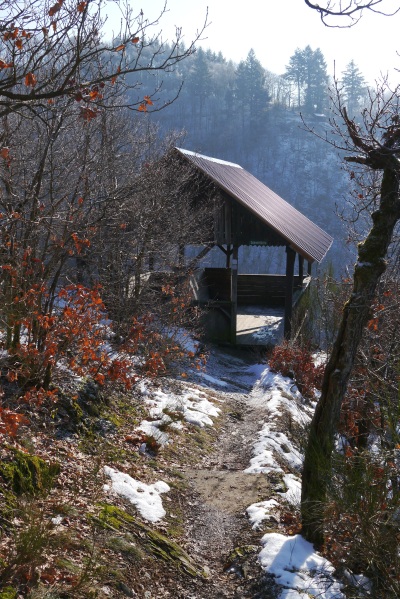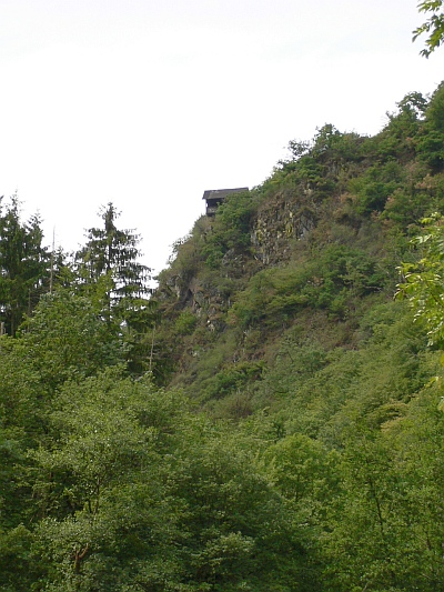 Auf dem Lieserpfad von Manderscheid nach Wittlich hat man sehr schöne Ausblicke. Einer der Aussichtspunkte, die den Blick auf Burgweiher und Liesertal eröffnen, ist die Schmitthütte, die auf einem Felsen errichtet wurde.