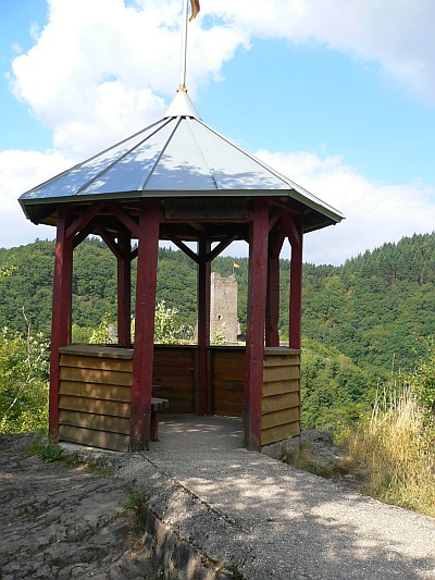 Das Kaisertempelchen wurde vor 1888 durch den Verschönerungsverein, Vorgänger des Eifelvereins, erbaut. Bei den alten Manderscheidern heißt der Aussichtspunkt immer noch "Jackenhäuschen", abgeleitet von der Flurbezeichnung "Auf der Jack". Später wurde der Pavillon dann in Kaisertempelchen umbenannt, zu Ehren des Kaisers oder weil der Kaiser bei einem Besuch hier die Aussicht auf die beiden Burgen genoß? [1]