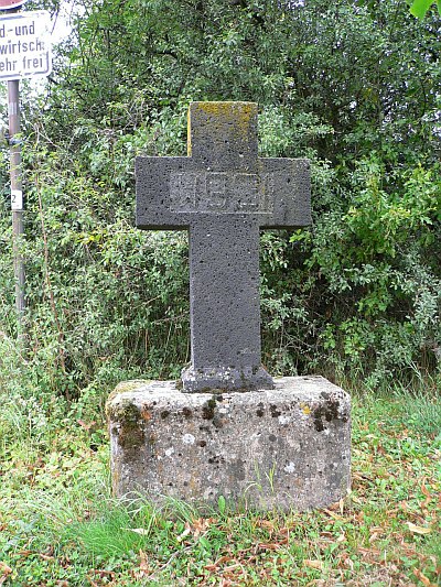 Das Kreuz steht ca. 250 m vom Dorfrand entfernt auf dem Weg zum Maulbachtal an einer Wegekreuzung. Es ist aus Eifeler Basalt geschaffen und trägt nur die Jahreszahl 1921.