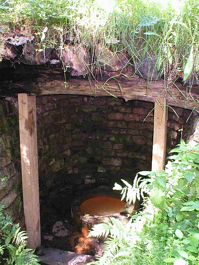 Der Brunnen liegt praktisch unter dem Weg und ist daher mit einer Stein- und Holzabstützung überbaut. Die optische Qualität des Wassers machte einen ungenießbaren Eindruck. [2]