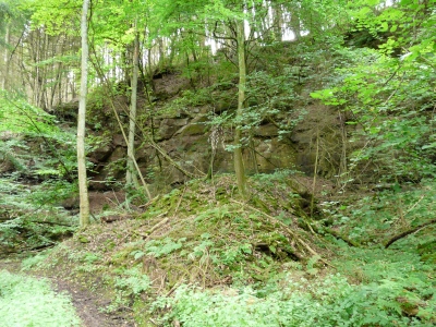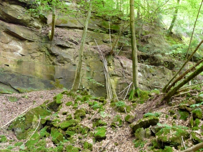 Im Gottgraben trifft man auf ein feinkörniges, sehr weißliches Steinmaterial. [1]