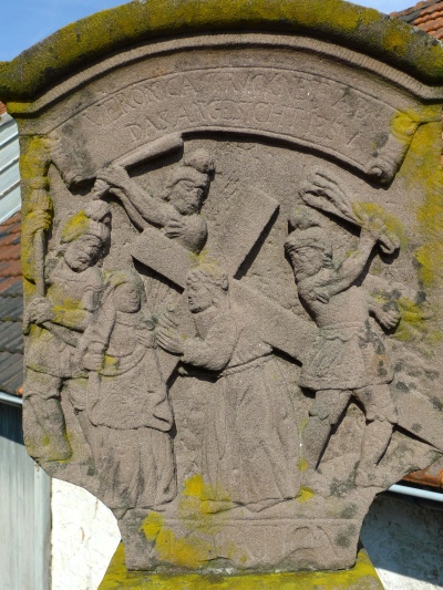 Am Nord- und Südrand des Kirchhofs 15 Stationen eines barocken Kreuzwegs mit segmentbogig schliessenden Reliefplatten auf glatten Schäften. Die nur fragmentarisch erhaltenen Stationen 14 und 15 sind in die Stützmauer an der Südseite des Kirchhofs eingelassen. Hier auch einige alte Grabsteine. [1]