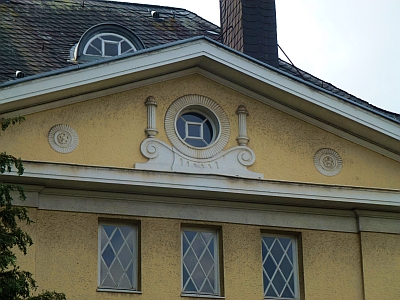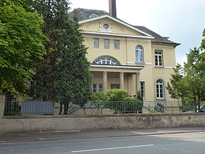 Neuklassizistische Villa, 1920, Architekten Peter Marx und Peter Gracher, unter Verwendung der Außenmauern des Vorgängers; verschachtelter Walmdachbau mit risalitartigen Schmalseiten mit niedrigeren Walmdächern; Ausstattung.