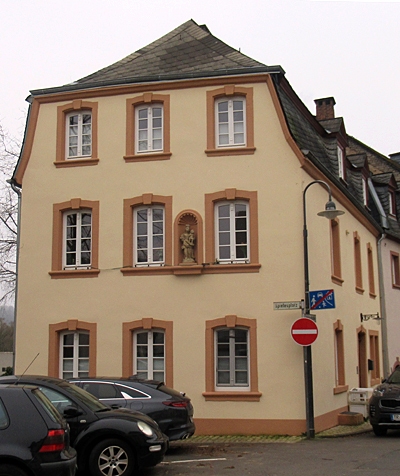 Der straßenbildprägende, barocke Mansarddachbau stammt aus der zweiten Hälfte des 18. Jahrhunderts. Die Giebelwand zu Nr. 3 ist mittelalterlich. In einer Nische befindet sich eine barocke Muttergottes. [1]