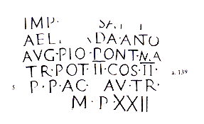 Der Meilenstein wurde unter Hadrianus (Regierungszeit 117-138) im Jahre 121 gesetzt. Hadrian verbrachte kurz nach dem Fest der Stadtgründung Roms den Rest des Jahres in Gallien, den Winter 121/122 vermutlich in Lyon, von wo er die Truppen an Rhein und Donau inspizierte (5,S.129). Wahrscheinlich wurde eine dieser Inspektionsreisen als Anlass zum Setzen des Meilensteines genommen. Etwa in der gleichen Zeit und zum gleichem Anlass könnten der Meilenstein aus Dalheim sowie der Bingener