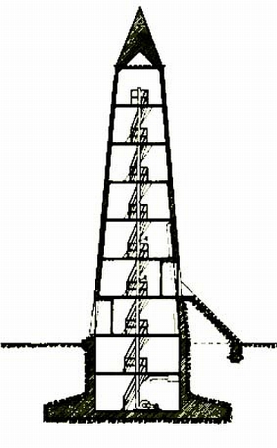 Betonsichtiger zuckerhutartiger Bau nach der Art der von der Firma L. Winkel entwickelten Luftschutztürme mit einem ebenerdigen Eingang und einem höher gelegenen Ausgang für den Fall, dass der Bunker verschüttet wird. Im Inneren mehrere Geschosse, durch eine zentral gelegene Treppe erschlossen, auf jeder Ebene Luftfilteranlagen der Firma Auer, von innen verschließbare Luftstutzen, an die Außenwände angelehnte gebogene Holzbänke erhalten, darüber an der Wand Aufschriften "Plätze einnehmen" "Luke schießen".