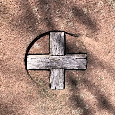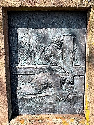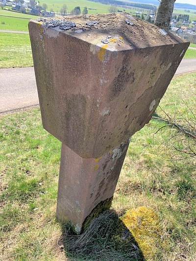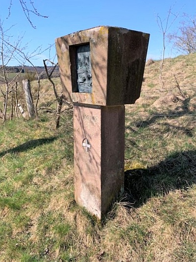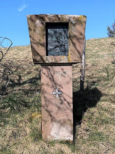 Auf einem dem Friedhof gegenüberliegendem Tufffelsen steht ein 1,63 m hohes Nischenkreuz aus vulkanischem Tuff (17. Jahrhundert), das den Anfang der früheren Kreuzwegstationen darstellen soll.