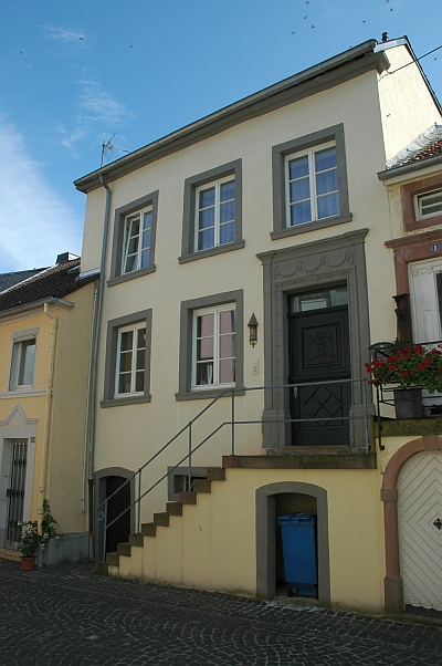 Die Haustür von Nr. 10 sehr aufwendig mit einem Gewände in Louis-seize-Formen mit Girlanden auf dem Sturz gerahmt, die von Nr. 8 ganz schlicht. Stalltür bei Nr. 10 neben dem Treppenauftritt, bei Nr. 8 unter dem Podest. Nr. 10 mit zwei Obergeschossen, Nr. 8 mit nur einem Vollgeschoss, darüber ein Drempel mit Luken. [1]
