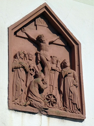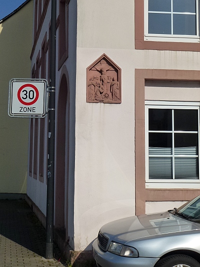 In der Giebelwand barocker Bildstock, bezeichnet 1668 (Renovierung). [1]