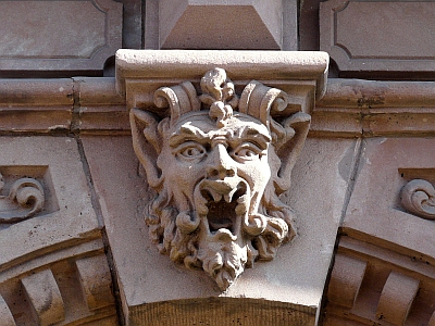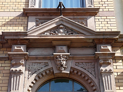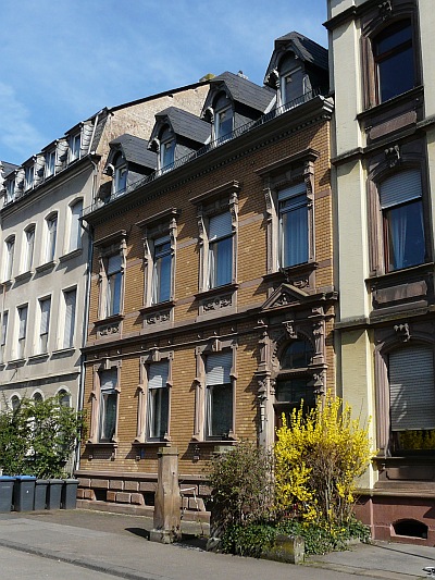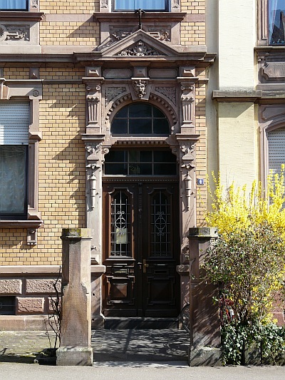 Späthistoristisches Wohnhaus, sandsteingegliederter Klinkerbau, Neurenaissancemotive, 1898; schmiedeeisernes Eingangstor und Sandsteinpfosten der ehemaligen Gartenumfriedung; straßenbildprägend. [1]