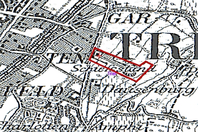 [Bild 1] Die Topograhische Karte 1:25.000 von 1895 zeigt noch den Schießstand in einer Länge von 200 Metern Richtung Petrisberg.