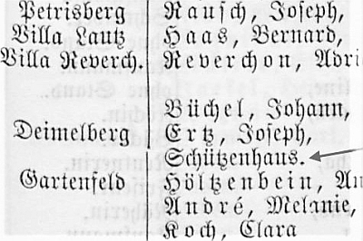 Ein erster Nachweis über das Schützenhaus findet sich im Adressbuch der Stadt Trier von 1867 (Section I, Haus Nr. 320a) und lässt damit auf das Entstehungsjahr 1866 schließen. [Bild 2]