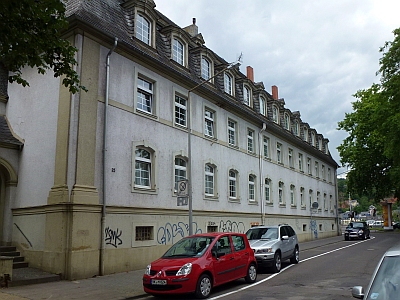 Gruppe von Wohnhäusern für Offiziere der französischen Besatzung, ab 1921; langgestreckter geschwungener Block (Merianstraße 20–23), flankiert von eingeschossigen Einzelbauten (Nr. 19 und 24), barockisierender Heimatstil, sowie barockisierende Putzbauten (Martinsufer 4–7). [1]