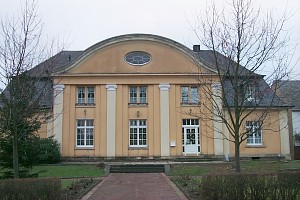 Ein- bzw. eineinhalbgeschossiger Putzbau mit Mansarddach in strengen, nachbarocken Formen der Reformarchitektur. Äußerlich offenbar weitgehend unverändert erhalten. [1]